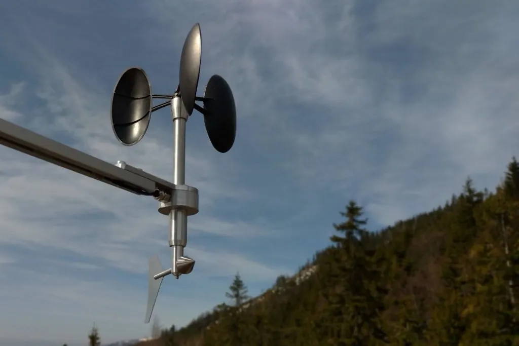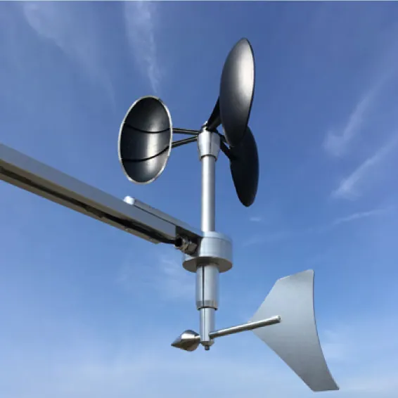 Anemômetro conjugado com sensores de velocidade e direção do vento. Equipamento com baixo consumo e fácil instalação.