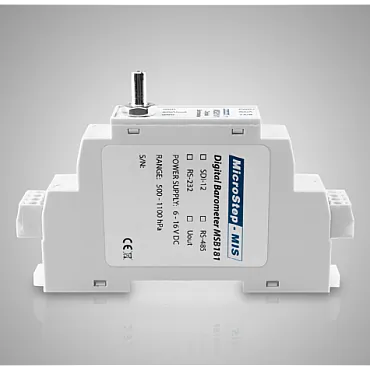 Transmissor de pressão barométrica de alta precisão específico para fixação em trilho DIN, sem display. Opções com saídas analógicas e digitais. Consulte-nos.