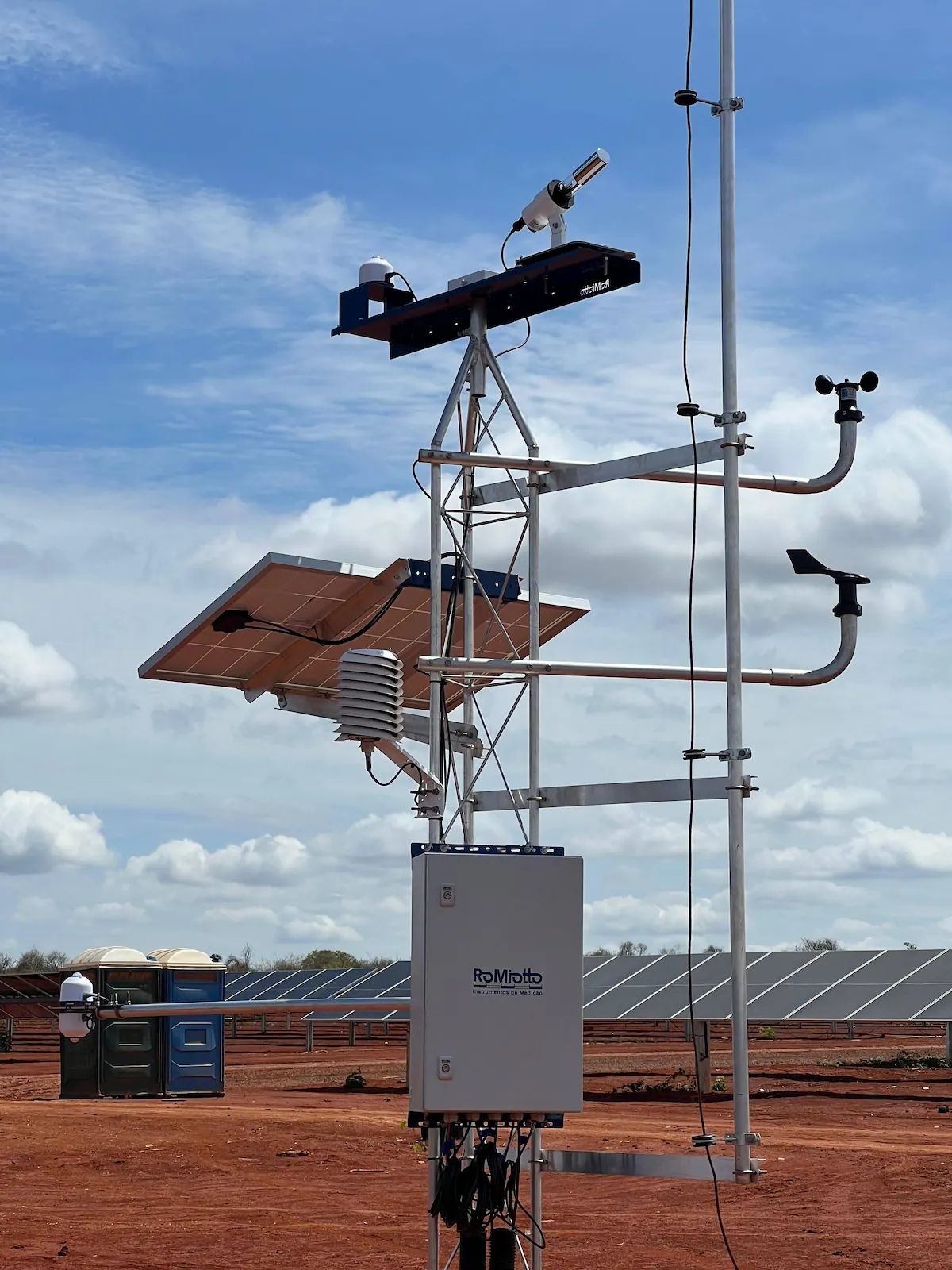 Estação solarimétrica completa, composta por conjunto de sensores, cabos de ligação, estruturas de fixação, sistema de alimentação, sistemas de transmissão de dados e demais acessórios. Consulte um especialista e recebe um orçamento rápido no vendas@romiotto.com.br.