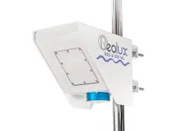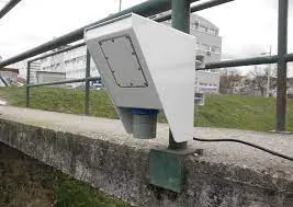 Sensor tipo radar para monitoramento de nível e velocidade da água, com faixa de medição de 0.02 m/s a 15 m/s.